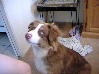 Ferris lives with four cats, one cockatiel, and Nana who is a dog. He has one gold eye, one blue eye and is an Australian Shepherd with immense personality and no show qualities.
