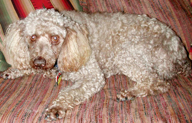 Odie is an affectionate old poodle. He is also a rescue. Because of his age, he is a bit spaced-out. He can't see or hear too well any more.