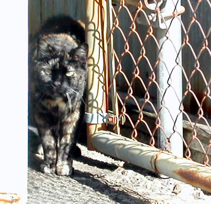 Alley is a feral cat that lives out behind Rodster, Inc., and survives on food left out by Craig at Craig's Automotive for such cats.