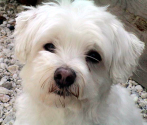 My half brother is Mikey, he's the Maltese. He was already part of the family when we got here. We all live together in perfect bliss and harmony, except for when Mikey growls at us for touching him by accident sometimes. (Mikey says "Some accident!!")