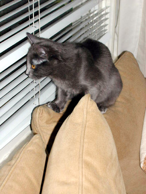 Smokey is a Russian Blue/Angora mix. He is very smart and very fast. He purrs LOUDLY.