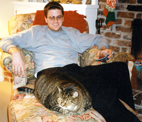 He was huge. He was loving. He was one of the most sociable animals that ever lived. If you were in a room, he'd want to be near you. No. He wanted to be right next to you. Touching you (see photo below). People responded to that. They were used to cats that were stand-offish. He was the opposite. He loved attention and returned affection enormously. Not just with people.