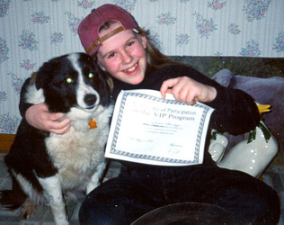 I adopted Rudy from a local dog shelter 14 years ago. She was a very timid and frightened six month old border collie when I discovered her. When we arrived home my children were ecstatic. Rudy however we learned quickly had been abused and was not ready to share this newfound, fun home with the "Lord of the Manor." You see, immediately upon laying eyes on my husband she began a rather loud and tedious barking and grumbling session but with patience, time and a wonderful trainer she grew into a very loving and faithful family member.